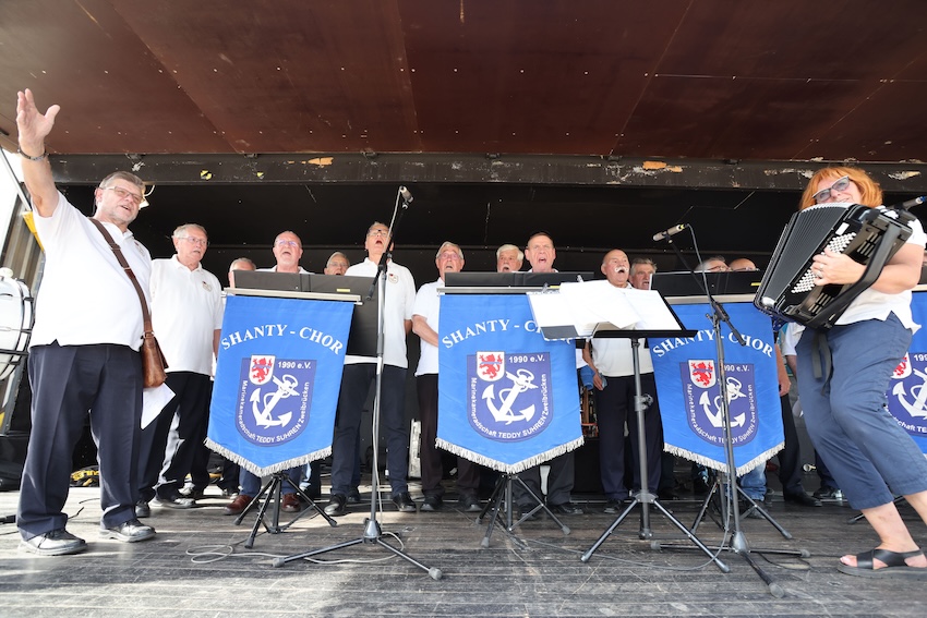 Der Samstag begann auf dem Christian-Weber-Platz mit der von der Homburger MK organisierten vierten Ausgabe der Veranstaltung „Meer erleben“ mit dem Auftritt des Shanty-Chors der MK Landsweiler-Reden. Oberbürgermeister Michael Forster begrüßte die Besucher. Christian Weber, Homburgs Karlsberg-Chef und Präsident des deutschen und europäischen Brauerbundes übernahm den Fassbieranstich. Für Kinder gab es neben den Malangeboten bei der DLRG und dem Ballonflugwettbewerb beim ACV Automobil-Club Verkehr die Hüpfburg „U-Hüpf“ in Form eines U-Bootes. Das Infomobil „Deutsche Marine on Tour“ präsentierte die Deutsche Marine, ein Infopavillon den DMB. Am Pavillon des FC 08 Homburg konnte man sich am Glücksrad versuchen. Für die Homburg-Besatzung hatte Rafael Kowollik extra Fußbälle und ein Mini-Tor mitgebracht. Gewonnen hat die Kommandantin mit den meisten Toren. Live-Musik trug das Trio MEP-Live bei, bevor der Shanty-Chor der MK Teddy Suhren Zweibrücken nochmals Seefahrtmelodien zu Gehör brachte.