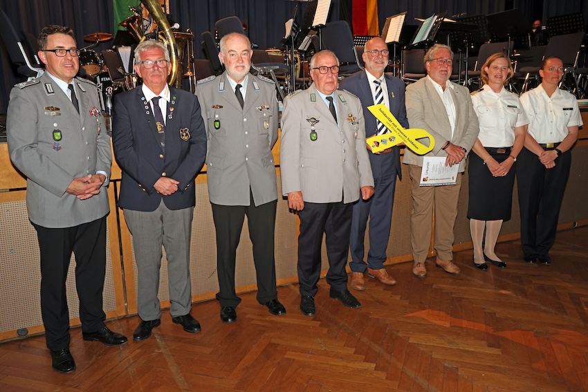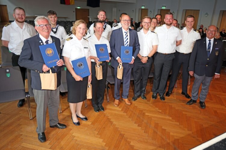 Manfred Abel ließ die 30 Jahre der Patenschaft Revue passieren, bevor er den städtischen Vertretern dankte. Nach den Festreden zeichnete Heinz Maurus Inka von Puttkamer, Cornelia Just, OB Forster und Abel mit einer Ehrenurkunde des DMB aus. Oberstabsbootsmann Klaus Lieser erhielt Ehrenurkunde und Ehrennadel für seine 25-jährige Mitgliedschaft in der MK Homburg/DMB.