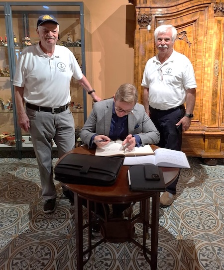 Zum Abschluss trug er sich noch in die Gästebücher der MK sowie des Schiffes und des Museums ein. Amthor hob an dieser Stelle noch mehrfach das außerordentliche Engagement der MK Peenemünde und des Fördervereines hervor und bedankte sich bei allen für die geleistete ehrenamtliche Arbeit und wünschte uns weiterhin viel Erfolg.