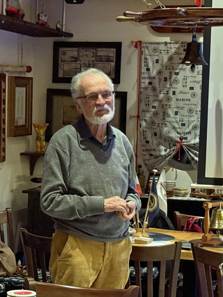 Dienten die ersten beiden Veranstaltungen dem geselligen Beisammensein, ging es als nächstes um den aufregenden Transport von U 17 von Kiel nach Sinsheim ins Technik Museum Sinsheim. Flottillenadmiral a.D. Viktor Toyka, Mitglied der MK und von Hause aus U-Boot-Fahrer, zeigte ein spannendes Video und erzählte von seinen Erlebnissen auf der Route.