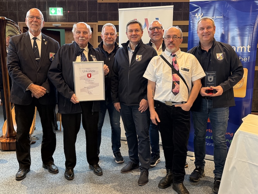 Die Marinekameradschaft Wesel konnte sich 2025 in den Kreis der Empfänger des Ehrenamtspreises der Stadt Wesel einreihen. Anfang Dezember lud Rainer Benien, der Bürgermeister der Stadt Wesel, insgesamt zehn Preisträger in den Ratssaal ein. Zur Übergabe des Preises bat er den 1. Vorsitzenden Klaus Penning zu sich ans Rednerpult.