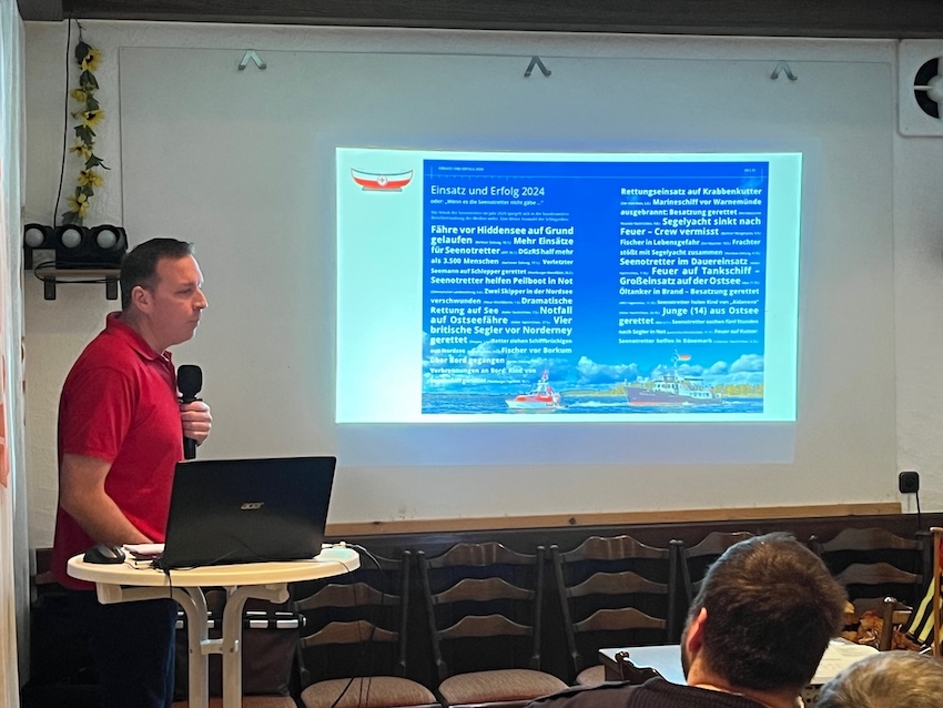 Nach dem Erfolg bei der Premiere im Vorjahr war es wieder soweit: In der Gaststätte Overberg Stuben hielt Kai Harjes, ehrenamtlicher Mitarbeiter der Deutschen Gesellschaft zur Rettung Schiffbrüchiger (DGzRS), am 22. November 2025 einen Infoabend über die ehrenamtliche Arbeit der Seenotretter ab.