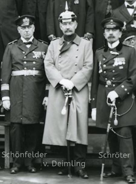 Röbcke (Ausschnitt Gruppenbild Marineverein Freiburg 1913, von rechts nach links: 1. Vorsitzender Ober-Decksoffizier Richard Schröter, Ehrenvorsitzender General Berthold v. Deimling, Ehrenmitglied Konteradmiral Victor Schönfelder), Quelle: Stadtarchiv Freiburg M 737/7775