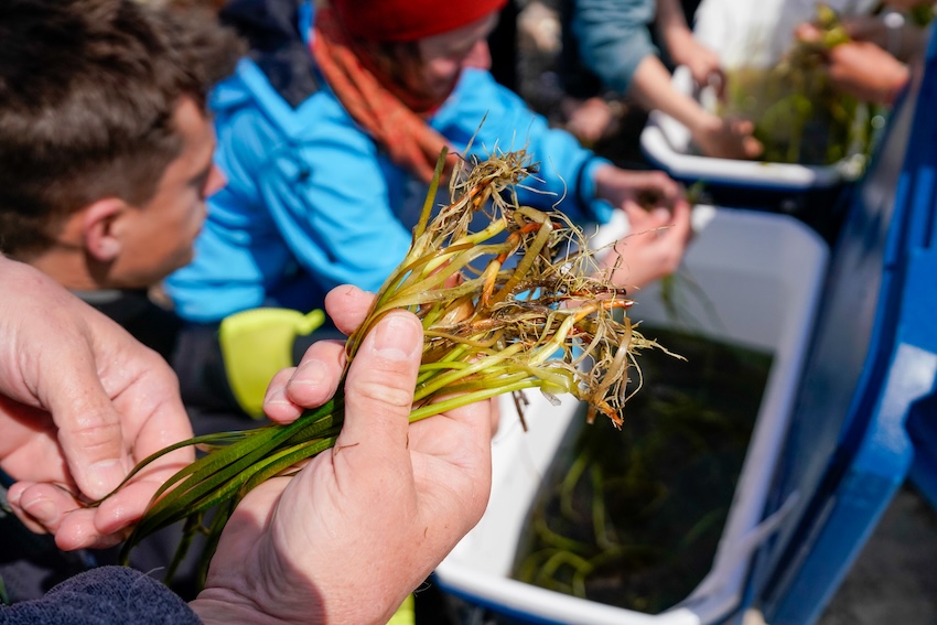 Einzelspross-Transplantation heißt die Methode, und es ist die derzeit effektivste Technik zur Wiederansiedlung von Seegras. Dafür braucht es viele Hände. In diesem Sommer übernehmen erstmals fünf Nichtregierungsorganisationen (NGOs) mit zahlreichen freiwilligen Taucher:innen in größerem Stil die Renaturierung.