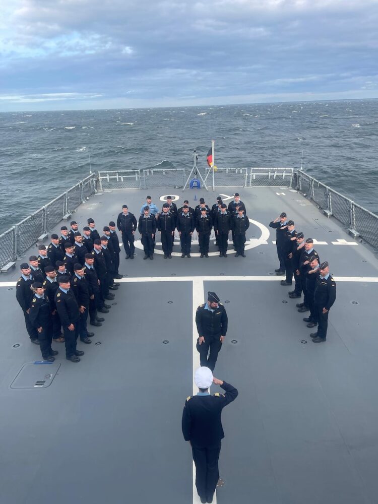 In der Werftunterstützungskompanie Hamburg am Reiherdamm wurde ich vom EKM, Hauptbootsmann Kevin Kagel, empfangen und auf der „Köln“ von Fregattenkapitän Horn auf der Brücke begrüßt. Eine Überraschung war, dass der alte STO Christian Exner eingeschifft wurde. Auslaufen war um 16.00 Uhr mit Revierfahrt durch die Elbe bis 21.30 Uhr, vorbei an Helgoland auf Steuerbordseite, weiter am einem Windpark, parallel zur dänischen Küste in 20 SM Entfernung.