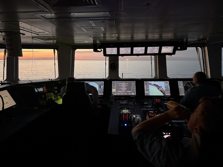 Am 21. September folgte die Fahrt durch den Fehmarn Belt Richtung Rostock, wo noch einmal die Rollen durchgespielt wurden. Mann über Bord, WO-Fahrübungen, inkl. Ruderversager und gegen ein Hindernis fahren, sprich Container mit Leckabwehrübung. Besonders hervorzuheben ist die Bereitschaft, mir auf meine Fragen Antworten zu geben.