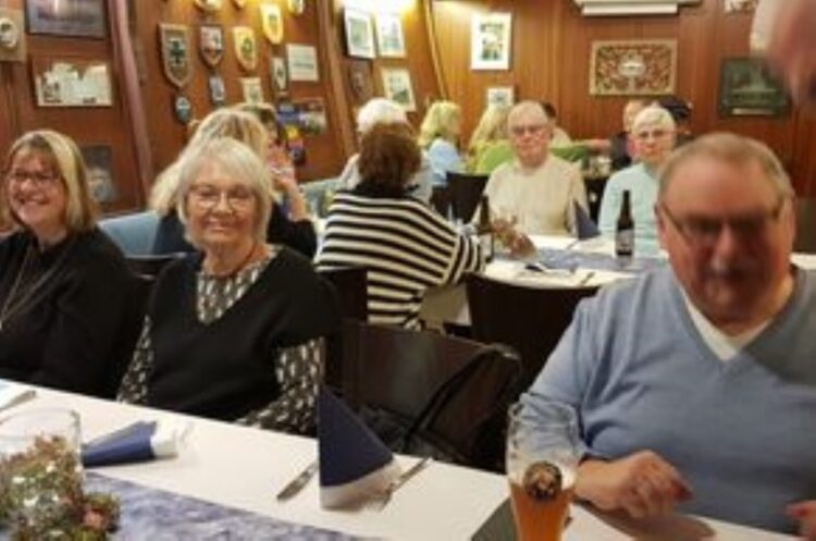 65 Gäste nahmen an den schön gedeckten Tischen unter Deck der Pluto Platz und ließen es sich gutgehen bei leckerem Geschnetzelten oder Labskaus.  Auch das Bier oder das Glas Wein – oder auch der Schnaps – ist allen gut bekommen. In geselliger Runde war es ein schöner, genussvoller Abend auf der Pluto.