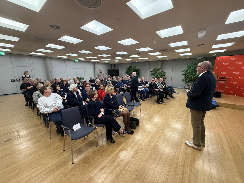 Der Bundesgeschäftsführer des Deutschen Marinebunds, Fregattenkapitän a.D. Martin Kübel, sprach zum Thema „Die Maritime Sicherheitslage Deutschlands“. Das Thema war wegen der drei Tage zuvor erfolgten Sperre der Straße von Hormus, die sich unmittelbar auf die Treibstoffpreise in Deutschland auswirkten, brennend aktuell. Die Vorständin der Sparkasse, Martina Birner, begrüßte die Gäste in ihrem Haus, darunter den Landtagsabgeordneten Jörg Schmidt, den Bürgermeister der Stadt Plauen, Tobias Kämpf, sowie zahlreiche Kreistags- und Stadträte aus dem Vogtland und der Partnerstadt Hof.